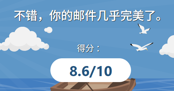 访问Newsletters spam test by mail-tester.com,向它指定邮箱发一个邮件,按照问题进行排查即可